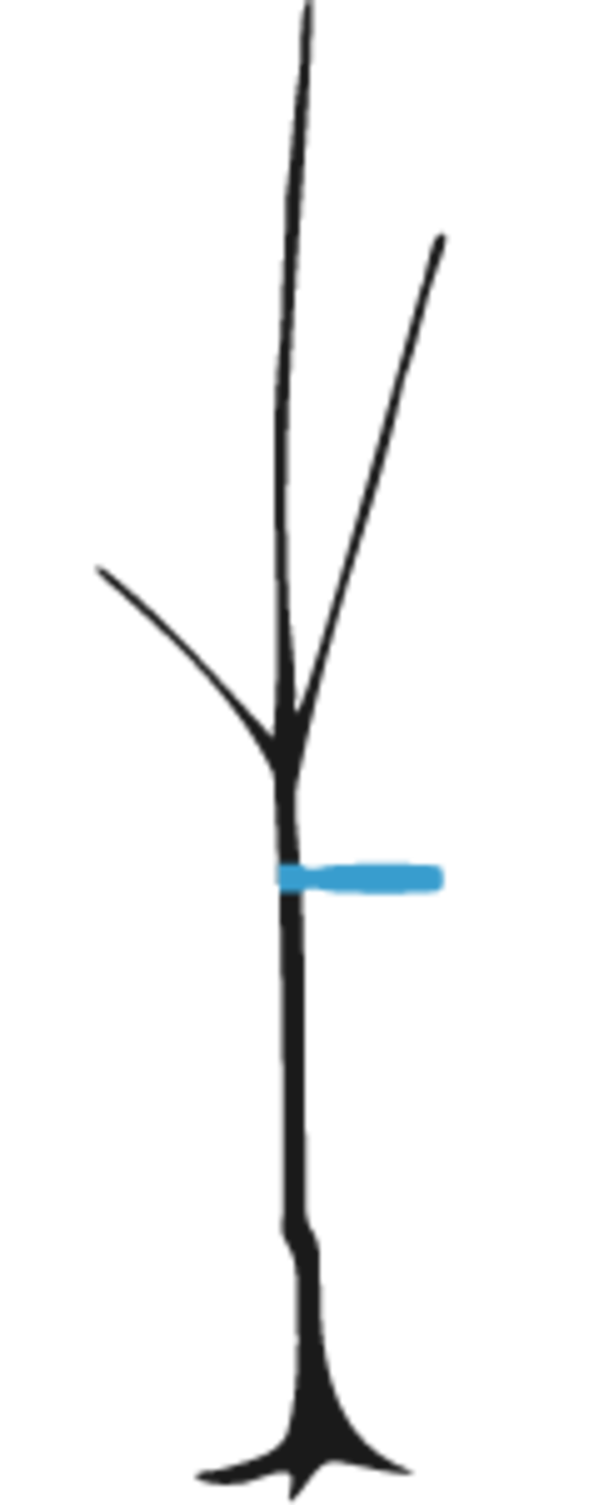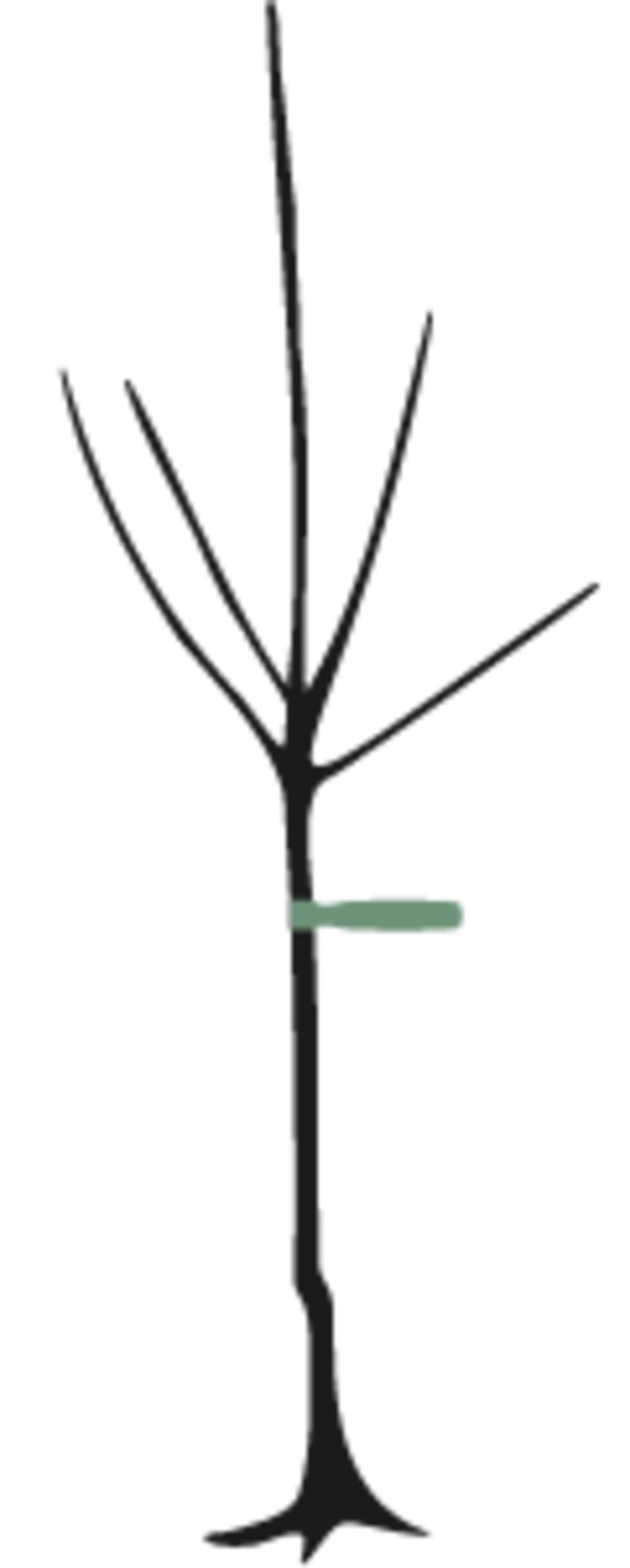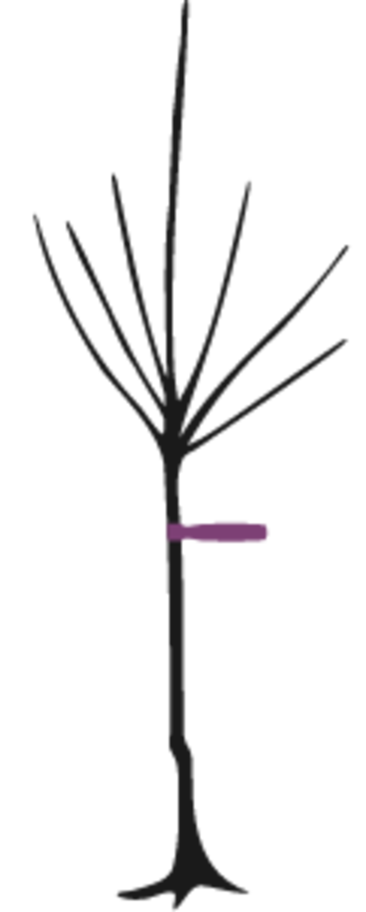 - bis zu drei Seitentrieben, ungleichmäßige bzw. einseitige Verzweigung