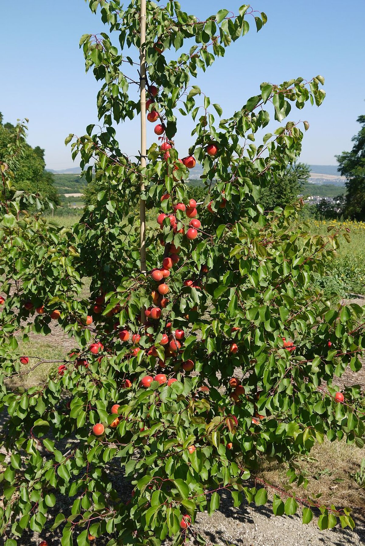 Variety with a secure high yield production, high crop load and outstanding fruit qualities. The fruits impresses with their bright colouring. Fruit thinning is exceptionally important for this variety. Annual too high yields in successive years can lead to tree loss. The robust blossoms ensure good yield even when bad weather conditions occur during flowering.