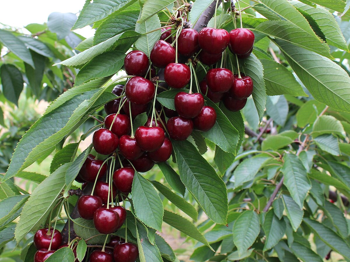 ideal bis hoch, dichthängend, Tendenz zur Bildung von Fruchtbüscheln, die mittellangen bis langen Stiele ermöglichen eine hohe Pflückleistung