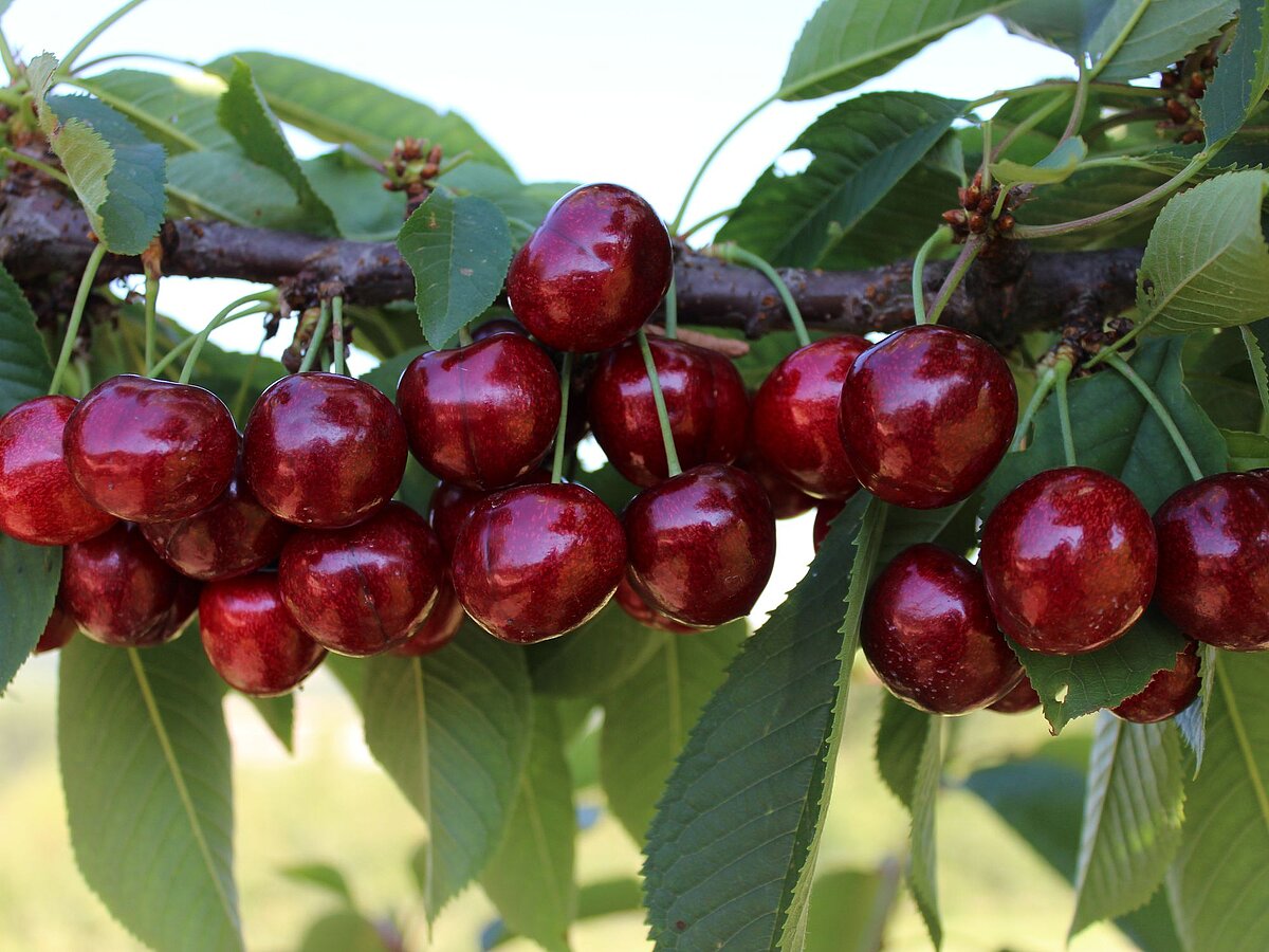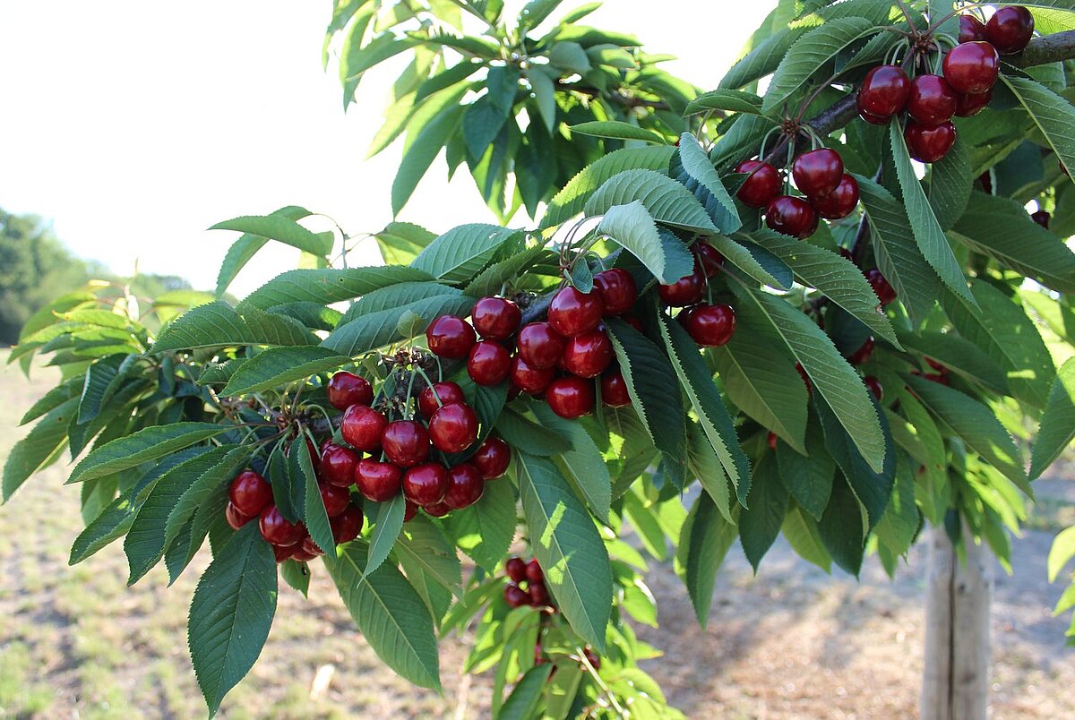 Dieses Kirsch-Highlight mit einem sehr langen Erntefenster überzeugt durch außergewöhnliche Fruchtmerkmale: Selbstfertilität, Reifezeit, Fruchtgröße, intensives Aroma bei feiner Textur, gute Platzstabilität, Ertragssicherheit sowie sehr gute Lagerfähigkeit und Shelf-Life. Durch die hohe Blühstärke in der mittleren Blütezeit eignet sich KIR LAMOUR ® zusätzlich als Befruchter für zahlreiche Sorten.