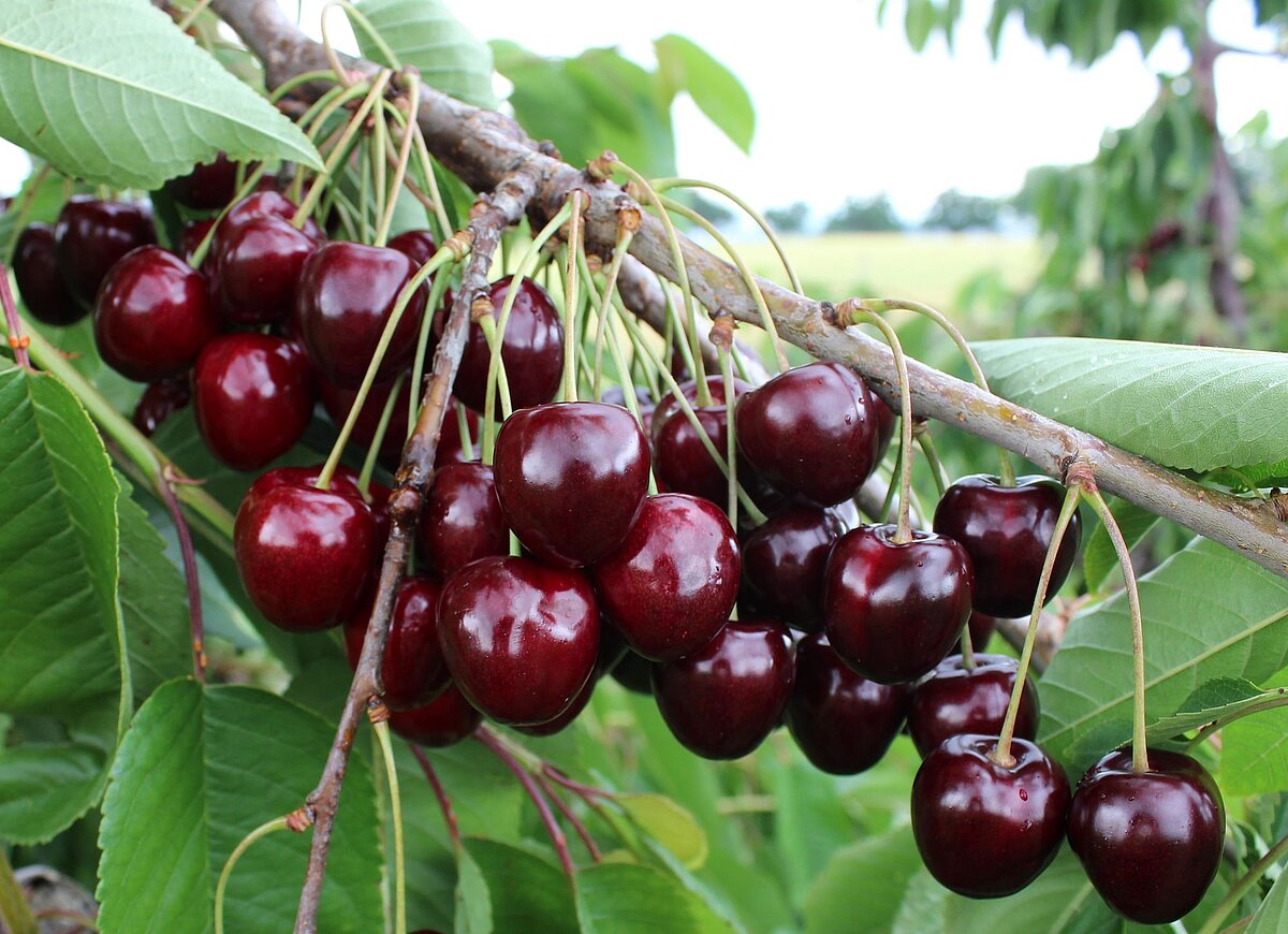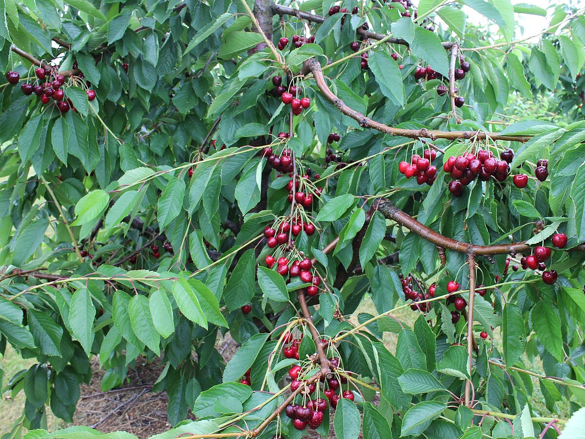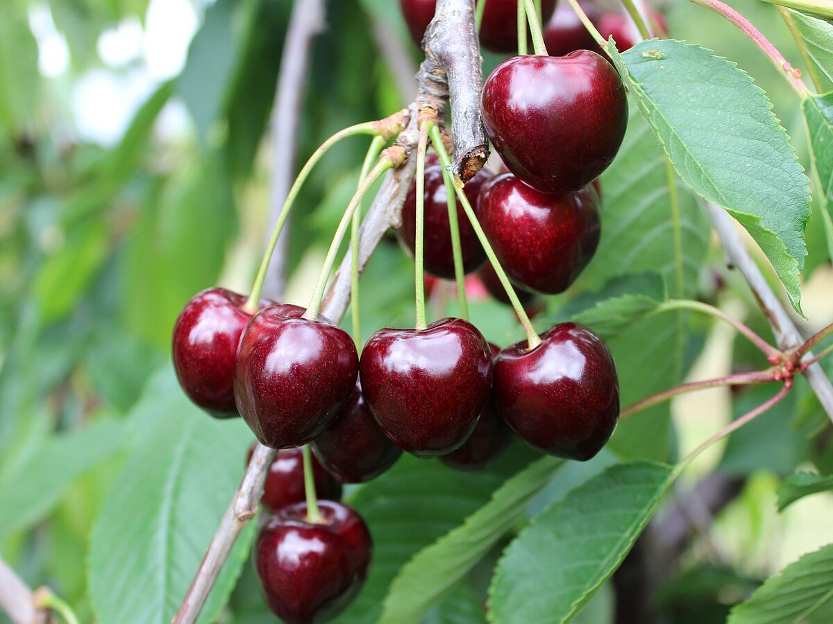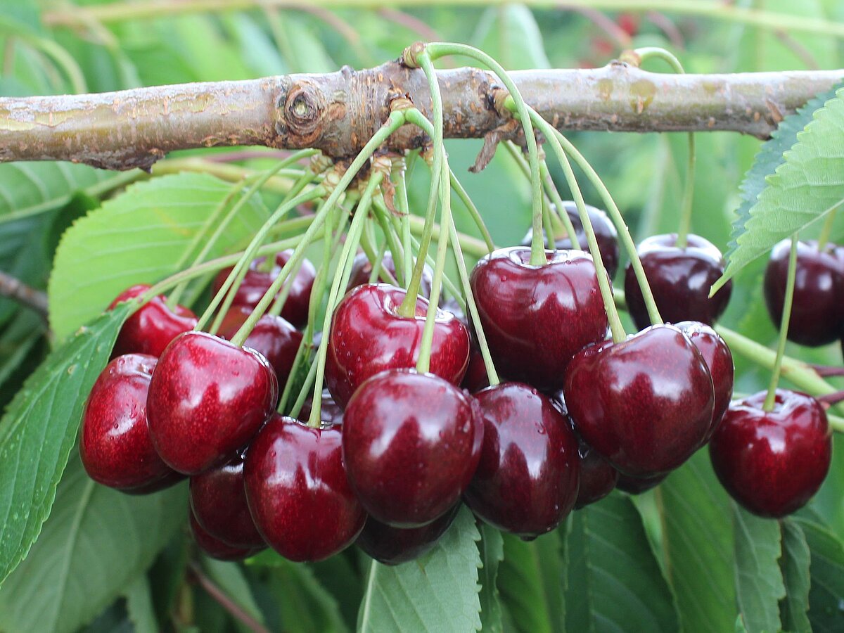 Burlat, CERASINA ® Prim 2.1 (S), SATIN ® Sumele (S), Early Korvik (S), STARBLUSH ® SPC 207 (S), Schneiders späte Knorpel, Walter (S), KIR LAMOUR ® KSG 24 A (S), CERASINA ® Final 13.1 (S), KIR ROSSO ® KSG 03 A (S)
