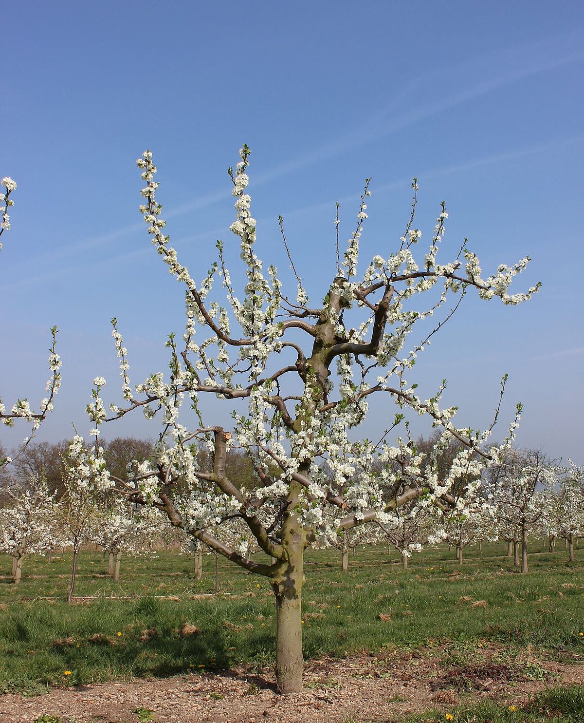 mittelstarker Wuchs, mittlere Verzweigung, tendenziell ausladend, gutes Blatt-Frucht-Verhältnis, leichte Valsa- und hohe Moniliaanfälligkeit